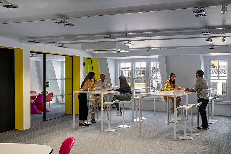 2012 bezog ZHA das siebenstöckige Gebäude. Das Team war anfangs jedoch noch aufgeteilt auf diese Adresse und auf ein umgebautes Schulhaus in der nahegelegenen Bowling Green Lane. Die Corona-Pandemie – als die Angestellten hauptsächlich von zu Hause aus arbeiteten – führte zu einem Umdenken. Die Geschäftsführer von ZHA sahen eine Gelegenheit, sich auf einen Ort festzulegen und zu überdenken, wie das Büro funktionieren sollte. Sie wollten nicht nur so viele Schreibtische wie möglich in die Räume hineinstellen, sondern es entstand die Idee, verschiedene Arbeitsweisen zu unterstützen. Den Mitarbeitern sollte die Möglichkeit gegeben werden, ganz flexibel zu entscheiden, wie sie arbeiten möchten, und dabei sinnvoll zu interagieren. "Wir wollten ihnen einen Anreiz dazu geben, sich wieder auf den Weg zur Arbeit zu machen." erklärt Geschäftsführer Chris Lepine. "Wir kamen zu dem Schluss, dass Raum für Meetings und Zusammenarbeit der Schlüssel ist."