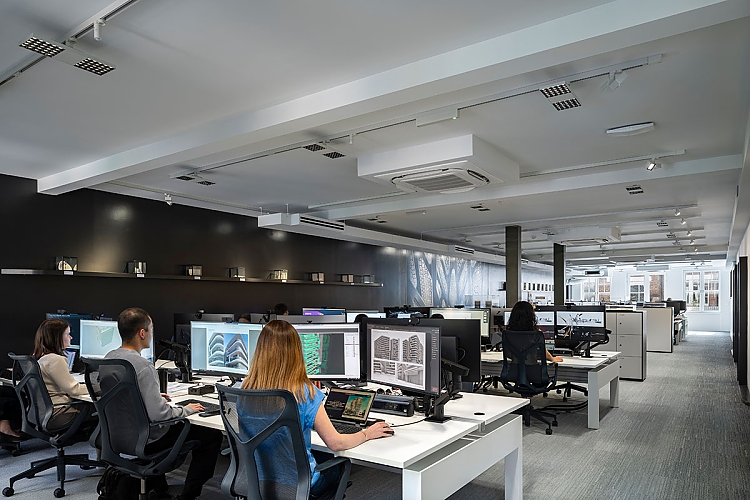 Das Resultat ist ein dynamisches Umfeld, das zu einem Architekturbüro passt, das seinen Fokus fest auf die Zukunft gerichtet hat.