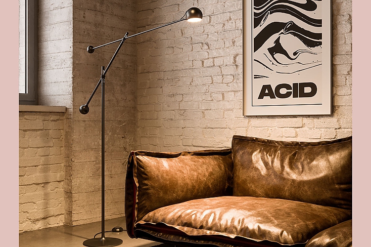 "'Ixa Floor' kombiniert einen schwenkbaren, kugelförmigen Kopf mit Stangen und Gegengewichten. Dadurch lässt sich das Licht frei und dynamisch im Raum inszenieren. Sehr charmant ist die magnetische Befestigung des Kopfes, die es ermöglicht, die Kugel anschlagsfrei zu drehen. Die elegante Balance wird durch Präzisionstechnik erreicht."