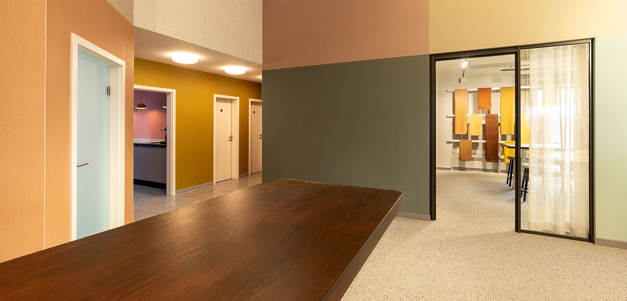 Vescom hat einen neuen Showroom nahe Frankfurt am Main. Er versteht sich als Ort des professionellen Austauschs und lädt Architekten und Designer aus ganz Deutschland zum Stöbern ein. Besucher bekommen einen Einblick in die gesamte Vescom-Kollektion mit über 5.000 Produktmustern und können an sämtlichen Wandflächen und an zahlreichen Möbelstücken Farben, Materialien und Strukturen der hochwertigen Dessins erleben. Damit dienen die Räume selbst als Präsentationsfläche für die Wandbekleidung, Vorhang- und Möbelstoffe des Herstellers.