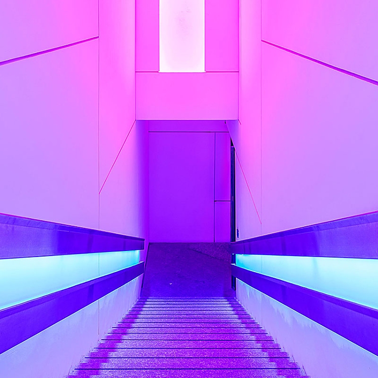 Der Weg zurück zur Erde erfolgt über einen Space-Tunnel. Der lang gezogene Gang, der mit Licht bespielt ist, führt zu den Galerien des Louvre Abu Dhabi. Hier kann der Museumsbesuch fortgesetzt werden.