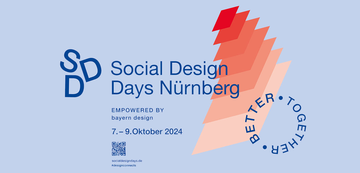 Vom 7. bis 9. Oktober 2024 lädt bayern design zur zweiten Ausgabe der Social Design Days Nürnberg ein. In diesem Jahr steht das Thema „better together“ im Fokus. Mitmachen ist erwünscht: Es können noch bis 31. Juli Themen für den Social Design Jam eingereicht werden.