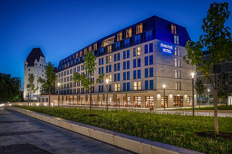 Kurze Wege in einem durchgängig gehobenen Ambiente zum Tagen und Übernachten, für Events und Veranstaltungen – das ist das Maritim Hotel mit seinen 223 Zimmern und Suiten. Es befindet sich in einem Gebäude mit dem Congress Centrum. Während sich das Hotel dem Donauufer zuwendet, sind rückwärtig die direkt mit dem Hotel verbundenen Räume des Congress Centrums angeordnet. Alle öffentlichen Bereiche des Maritim Hotel haben ein vornehmes, klassisches Flair – mit einer Prise Raffinesse. Von Anfang an arbeiteten die Maritim Hotelgesellschaft, deren Planungsbüro Reinhardt und Sander und die Hospitality-Profis von Geplan Design synergetisch zusammen. "In einer Art Workshop haben wir zusammen mit Reinhardt und Sander schon die ersten Vorstellungen zur Innenarchitektur erarbeitet", berichtet Rolf Glantz begeistert. Ein gelungener Auftakt für ein besonderes Projekt.
