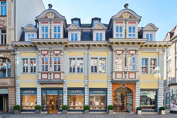 Im Zentrum von Erfurt erweiterte der traditionsreiche Juwelier Jasper seine Verkaufsflächen. Die Tradition und der Premiumanspruch des Schmuck- und Uhrenhändlers sollte sich bei der Erweiterung im neuen Look widerspiegeln. Das Raum- und Gestaltungskonzept von brandherm + krumrey nimmt daher den Geist des Ortes sanft auf, um eine hochwertige und zugleich entspannte Bühne für die wertvolle Ware zu schaffen.