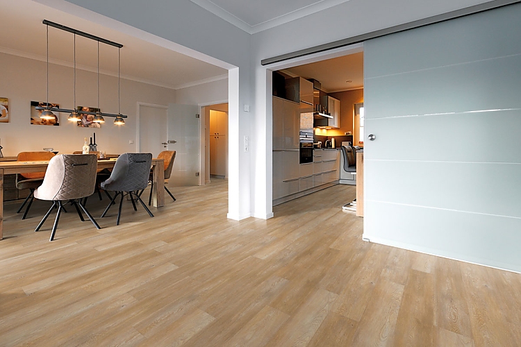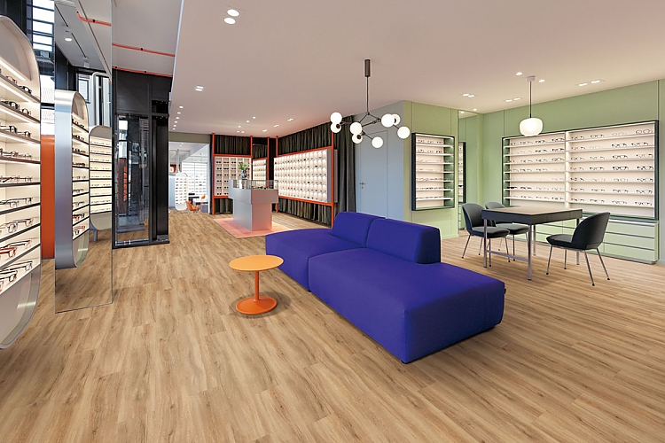 Die Planken (1219 x 183 mm) mit einer Aufbauhöhe von 5,2 bzw. 6 mm vereinen die Vorteile von Klebeware und herkömmlicher SPC-Ware. Die Kollektion bietet eine größere Gestaltungsfreiheit bei gleichzeitig optimaler Anpassung an funktionale Anforderungen in unterschiedlichen Bereichen.