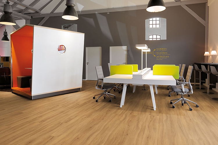 Project Floors bietet so eine noch breitere Palette identischer Dekore für unterschiedliche Anforderungen, wodurch einfacher ganzheitliche Raumkonzepte umgesetzt werden können. Die völlig neue Materialzusammensetzung mit einem erhöhten Kunststoffanteil anstelle des bei Rigid-Core-Belägen sonst üblichen Füllmaterials verleiht dem Boden deutlich mehr Flexibilität.