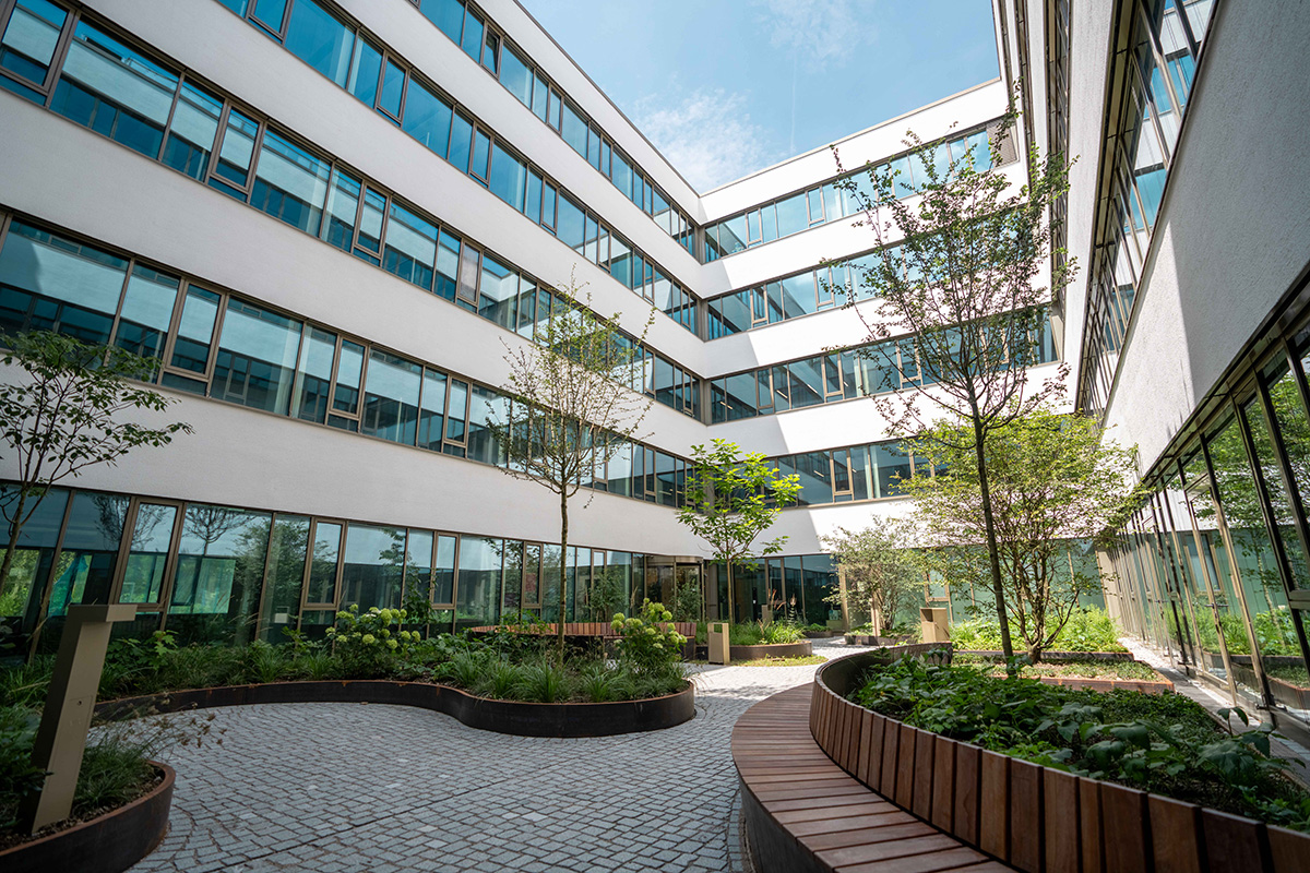 Die Atrien des Büroneubaus "Heads“ Office in Aschheim-Dornach bei München sind mit sieben Metern hoch genug für Freudensprünge. Der Grund für den Jubel: Das vor wenigen Monaten fertig gestellte Projekt des Grünwalder Projektentwicklers Rock Capital Group wurde nunmehr auch mit dem prestigeträchtigen iF Design Award 2025 in der Kategorie Interior Architecture ausgezeichnet.