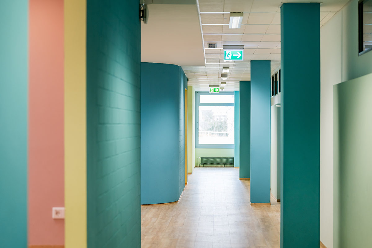 Die Zusammenarbeit aller Beteiligten hat ein Farbkonzept entstehen lassen, in dem sich Schülerinnen und Schüler, Lehrerinnen und Lehrer sowie Schulleitung und Stadt gesehen, gehört und verstanden fühlen.