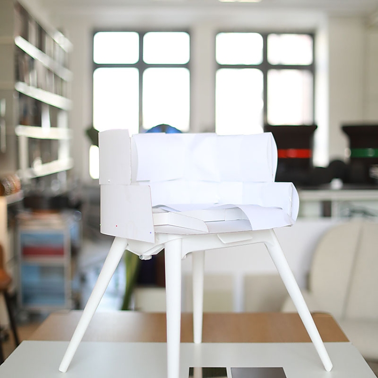 "Der '2-in-1 Chair' ist der Beginn einer neuen visionären Generation von Designalltagsobjekten, die in unterschiedlichen Szenarios eingesetzt werden können und so zukünftig neue Qualitäten auf begrenztem Raum bieten", so Werner Aisslinger.