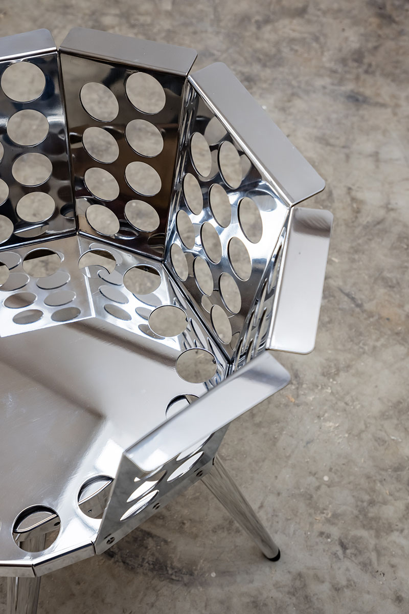 Bei der Produktion steht Nachhaltigkeit im Mittelpunkt: Die ressourcenschonende Produktion, der ausschließliche Einsatz recycelbarer Materialien und die außergewöhnliche Belastbarkeit und Langlebigkeit machen den Stuhl zu einer nachhaltigen Wahl. Zudem werden durch die Doppelfunktion Ressourcen gespart, die für die Herstellung der jeweiligen anderen Funktion anfallen würden.
