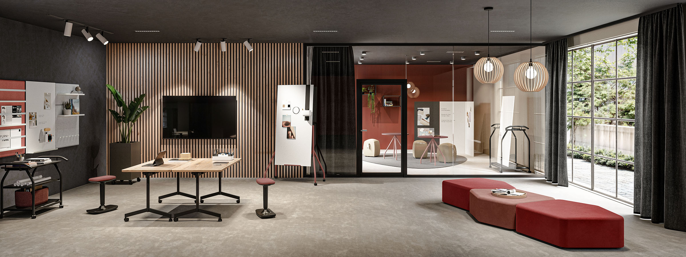 Dabei ist "Cantaris" nicht nur funktional, sondern auch optisch ein Highlight: Mit ihrem filigranen Fußgestell verkörpern die Tische, Whiteboards und Wagen eine moderne Leichtigkeit. Die schlanken Gestelle wirken leicht und modern – gleichzeitig bieten sie volle Stabilität und clevere Features für den agilen Büroalltag. Ob Thinktank oder Projektraum – "Cantaris" funktioniert nicht nur, es sieht auch noch gut aus. Besonders in Zeiten des flexiblen Office sind mobile, leichte Systemmöbel gefragt, die sich einfach umgestalten lassen, um agile Arbeitsumgebungen und multifunktionale Projektflächen zu schaffen. Dank der leichten Bauweise und dem Einsatz hochwertiger Rollen lassen sich diese Tische und Zubehörartikel eben auch schnell und unkompliziert umstellen, um den Raum je nach Bedarf neu zu gestalten.