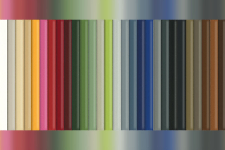 Insgesamt ist "skai Mileno EN" in 28 Farbtönen erhältlich, die sich über die gesamte Palette des Regenbogens erstrecken und neben zahlreichen neutralen auch viele kräftige Töne vom Blau- über den Grün- bis in den Rotbereich abdecken. Es ist also für jeden Geschmack – von zurückhaltend und dezent bis zu intensiv und prägnant – etwas Passendes dabei.