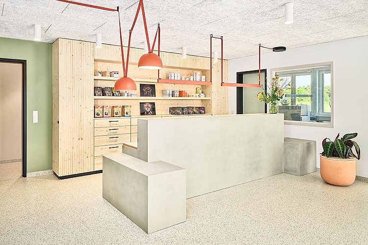 Seit mehr als 40 Jahren ist die Tierärztliche Praxis Ottersberg ein geschätzter Partner für Tiere und ihre Besitzer – an 365 Tagen im Jahr. In dieser Zeit hat sich die Praxis kontinuierlich weiterentwickelt und ihre Expertise in zahlreichen Bereichen vertieft. Mit einem über 70-köpfigen Team und einer erstklassigen Ausstattung an modernen Instrumenten und medizinischen Geräten bietet sie herausragende Versorgung nicht nur für Kleintiere, sondern auch für Nutztiere und Pferde. Auch beim Neubau setzt man Maßstäbe – dies unterstreicht die Gestaltung der Räumlichkeiten mit hohen Ansprüchen an Funktionalität und Innovation eindrucksvoll. "Wann immer man mit offenen Augen durch Gesundheitseinrichtungen läuft, entdeckt man Nora Böden", so Britta Borrmann. "Denn die Kautschukbeläge bringen alle Eigenschaften mit, die in diesem Segment benötigt werden." So legte die Designerin beispielsweise großen Wert auf ökologische Aspekte. Um ein gesundheitsförderndes Umfeld sicherzustellen, wurden Baustoffe gewählt, die einen positiven Einfluss auf die Innenraumluft und das Wohlbefinden haben. "Unsere Anforderungen an den Boden waren: Verschleißfestigkeit, Langlebigkeit und natürlich ein modernes Design", so die Projektplanerin weiter. Diese Ansprüche haben die Kautschukbeläge am besten erfüllt. Auch Tierpfoten fühlen sich auf den rutschsicheren und fußwarmen Böden wohl.