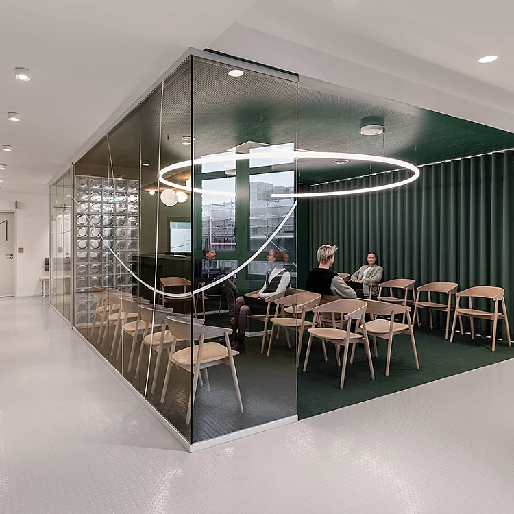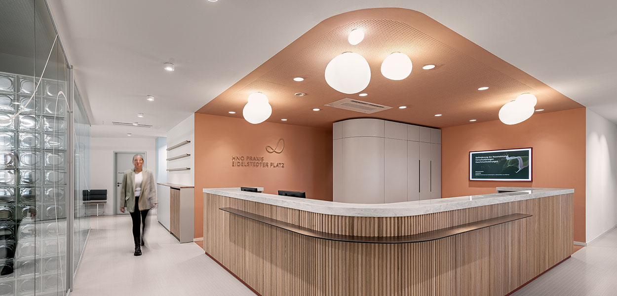 Die Praxis für Hals-Nasen-Ohren-Heilkunde befindet sich in einem Neubau in Eidelstedt und umfasst rund 450 qm. Sie vereint funktionale Anforderungen mit ästhetischem Design, wobei natürliche Materialien, Akustik, Orientierung und ergonomische Raumgestaltung im Fokus stehen. Das Wegeleitsystem und die Farb- sowie Formgestaltung tragen zur beruhigenden und klaren Atmosphäre bei, während die Raumstruktur und das unaufdringliche Design eine ansprechende und nutzungsorientierte Praxisumgebung schaffen und den Menschen in den Mittelpunkt stellen.