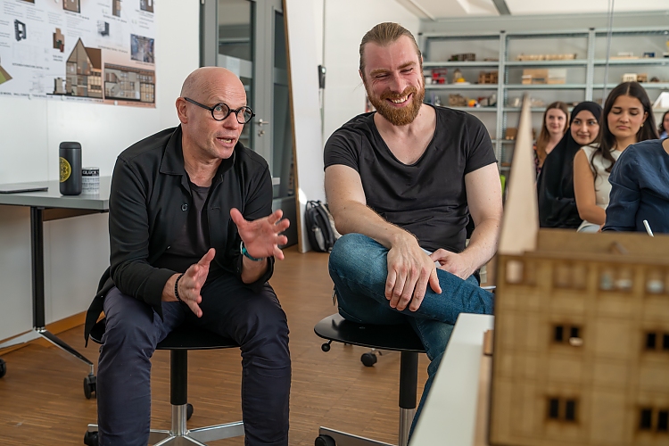 Auch die Zusammenarbeit in den unterschiedlichen Disziplinen Architektur und Innenarchitektur ist nicht immer einfach, weiß Pia Danner. "Die Studierenden mussten erst einmal herausfinden, wer was wie macht. Schraffuren zum Beispiel werden ganz anders dargestellt." Thomas Kauertz ergänzt: "Die Kandierinnen und Kanadier aus Vancouver kommen aus der 'City of Glass'. Da gibt es keine Häuser, die 100 Jahre alt sind und Fachwerkhäuser sowieso nicht. Von daher ist das für sie etwas komplett Neues."