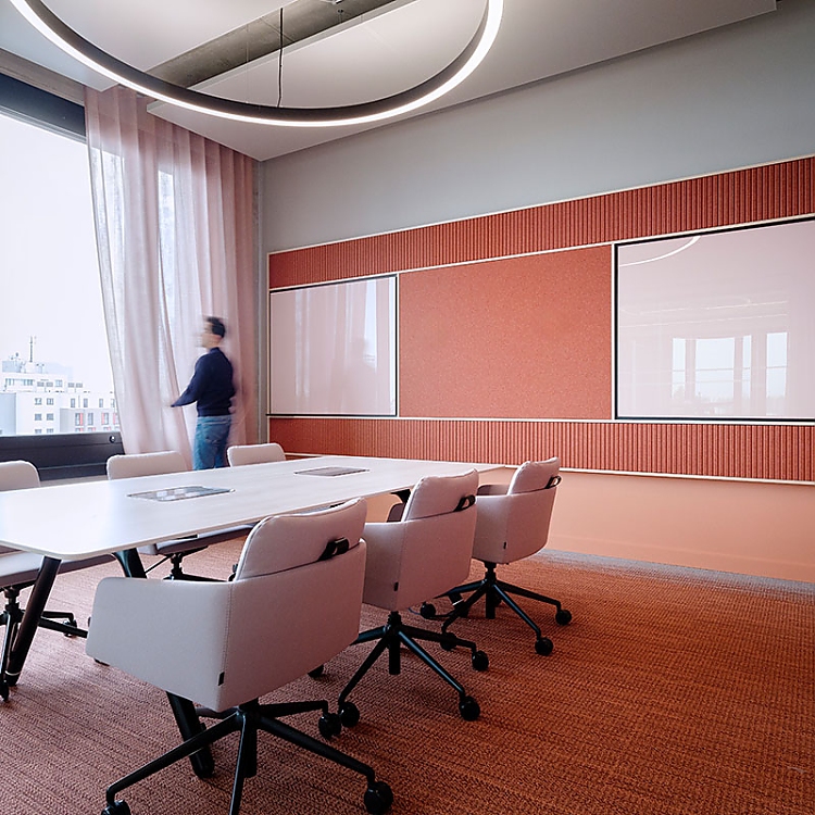 Wie gestaltet man die Niederlassung eines global agierenden Unternehmens, sodass die Räume individuell wirken und sich die Mitarbeitenden zu Hause fühlen? – "Localize it!" Getreu diesem Motto bereitete das Kinzo-Team in Berlin und München seinen erfolgreichen Pitch vor und überzeugte nicht zuletzt durch sein tiefes Verständnis für zukunftsorientiertes Arbeiten und sein Gefühl für das Leben in der bayerischen Landeshauptstadt. In enger Zusammenarbeit mit dem Kunden wurde im nächsten Schritt ein Designentwurf angefertigt. Dafür gab es mehrmals wöchentlich digitale Meetings mit Projektmitwirkenden aus unterschiedlichen Ländern, wie Deutschland, England, Indien und den USA.