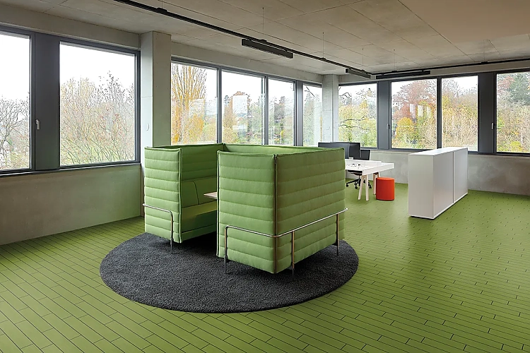 Gewebte Strukturen, subtile Texturen und ausdrucksstarke Farben wie Moosgrün, Gelb oder Saphirblau bieten Architektinnen und Architekten völlig neue Möglichkeiten, Atmosphäre und Identität in Räume zu bringen. Fischgrätverlegung in Gras- oder Zebranooptik – jede Fläche wird zur Leinwand für kreative Konzepte.
